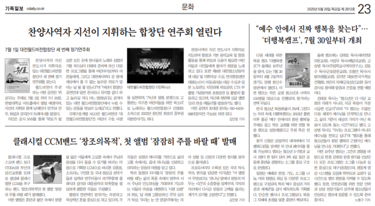 [기사] 찬양사역자 지선이 지휘하는 대전월드비전합창단 연주회 열린다(기독일보)